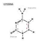 ADN con la citosina de la cadena complementaria mediante tres enlaces de